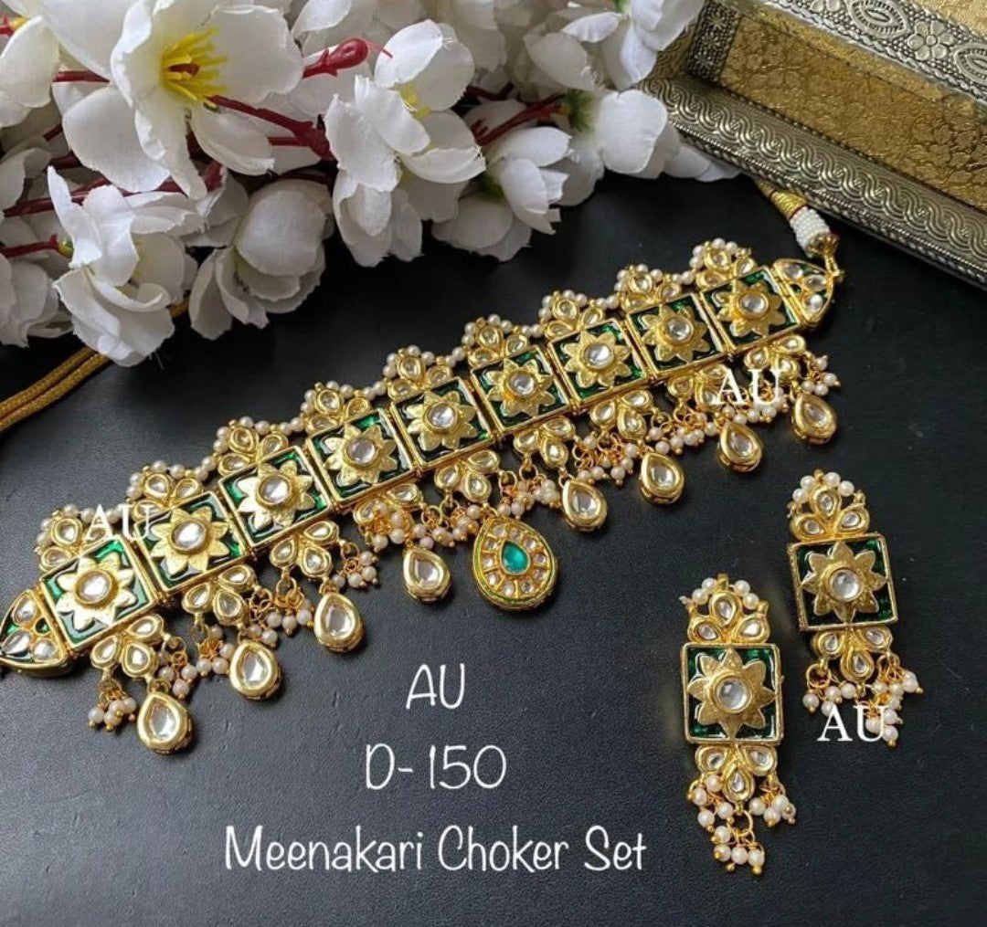High quality Kundan Meenakari Choker Set.making time 6-8 working days.